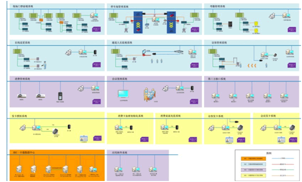系统将成熟先进的非接触式智能技术、计算机技术、网络通讯技术相结合,将客户、卡片、读卡设备以及管理需求紧密联系在一起,实现一卡通行。通过一张智能卡,实现发卡授权、门禁、考勤、消费、停车场、访客、会议、出入口管理等功能。